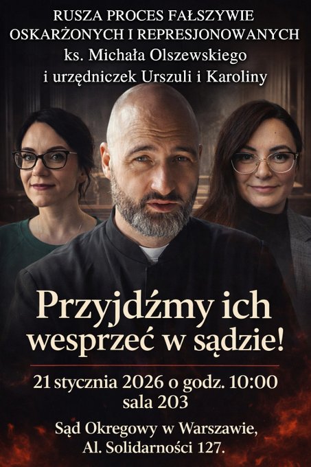 Lider Ruchu Obrony Granic Robert Bąkiewicza apeluje o wyrażenie solidarności z prześladowanymi przez reżim KO księdzem Michałem Olszewskimi urzędniczkami Ministerstwa Finansów.
