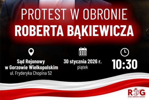 Przed sądem w Gorzowie Wielkopolskim (ul. Fryderyka Chopina 52) 30 stycznia 10.30 odbędzie się wiec poparcia dla prześladowanego przez reżim KO i spółki lidera Ruchu Obrony Granic Roberta Bąkiewicza. Wbrew faktom lider ROG oskarżany jest o znieważenie funkcjonariuszy Straży Granicznej i Żandarmerii Wojskowej poprzez nazwanie ich zdrajcami. Prokuratura postawiła liderowi Ruchu Obrony Granic Robertowi Bąkiewiczowi […]