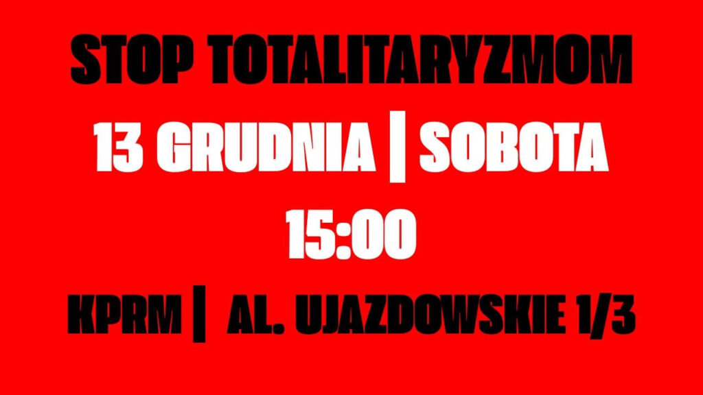 Lider Ruchu Obrony Granic Robert Bąkiewicz w mailu do sympatyków poinformował, że ROG organizuje 13 grudnia o 15.00 w warszawie przed siedzibą reżimu KO i spółki demonstracja w rocznice wprowadzenia Stanu Wojennego i powstania rządu PO i spółki. Korelacja tych dwóch wydarzeń dla lidera ROG to „złowieszczy chichot losu”, przykład tego, jak „historia zatacza tragiczne”, […]