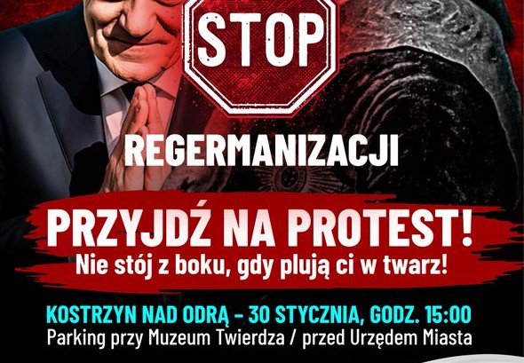 Lider Ruchu Obrony Granic Robert Bąkiewicz poinformował na X, że protest przeciwko germanizacji odbędzie się w Kostrzynie nad Odrą, 30 stycznia, o godzinie 15.00, na parkingu przed Muzeum Twierdza i Urzędem Miasta. Przyczyną protestu jest to, że władze miasta gloryfikują antypolskiego króla Prus Fryderyka II. Z Wikipedii można się dowiedzieć, że: „Fryderyk II negatywnie oceniał […]