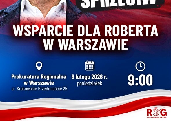 W poniedziałek 9 lutego o 9.00 przed budynkiem Prokuratury Regionalnej w Warszawie (ul. Krakowskie Przedmieście 25, wejście od ul. Trębackiej 2) odbędzie się wiec poparcia dla lidera Ruchu Obrony Granic Roberta Bąkiewicza. W tym czasie lider ROG będzie przesłuchiwany w sprawie zbrodni używania metafor o „napalmie” i „chwastach”. Za metafory o chwastach i napalmie reżim […]