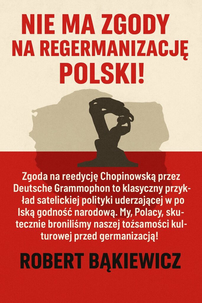 Na X lider Ruchu Obrony Granic Robert Bąkiewicz opisał szokującą i symboliczną sprawę tego, że „Deutsche Grammophon otrzymało prawo do wydania nagrań zwycięzców Konkursu Chopinowskiego”.
