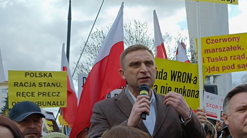 Video. Pierwsze przemówienie Bąkiewicza na demonstracji w obronie praworządności