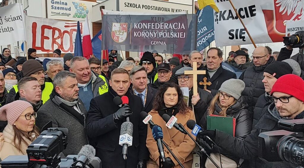 Lider Ruchu Obrony Granic Robert Bąkiewicz i aktywiści ROG demonstrowali przed szkołą w Kielnie na Kaszubach w obronie krzyża, który został wrzucony do kosza przez nauczycielkę. We wpisie na X Robert Bąkiewicz stwierdził, że „w Kielnie dzieci okazały więcej odwagi niż niejeden dorosły. Broniły krzyża, który na ich oczach nauczycielka wyrzuciła do kosza na śmieci. […]