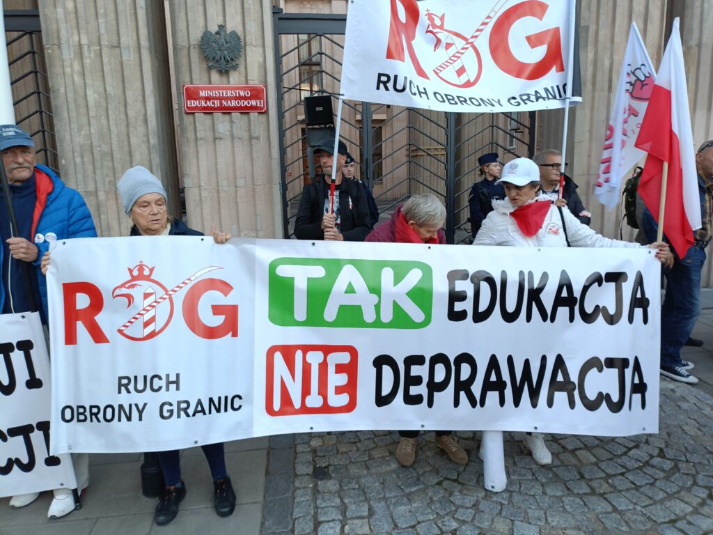 Kolejną demonstracją Ruchu Obrony Granic, która została przemilczana przez media, była demonstracja przeciwko pseudo edukacji pseudo zdrowotnej przed siedzibą Ministerstwa pseudo Edukacji pseudo Narodowej. Wcześniej media solidarnie przemilczały manifestacje ROG przeciwko KPO, w rocznice 1 czy 15 września.