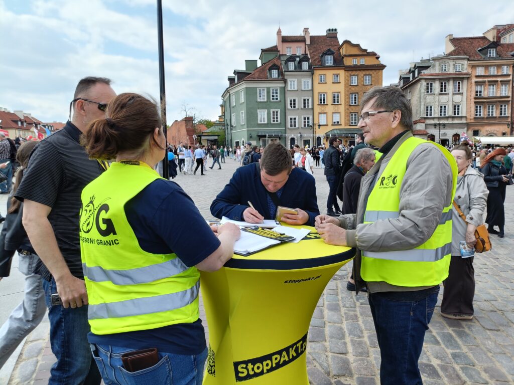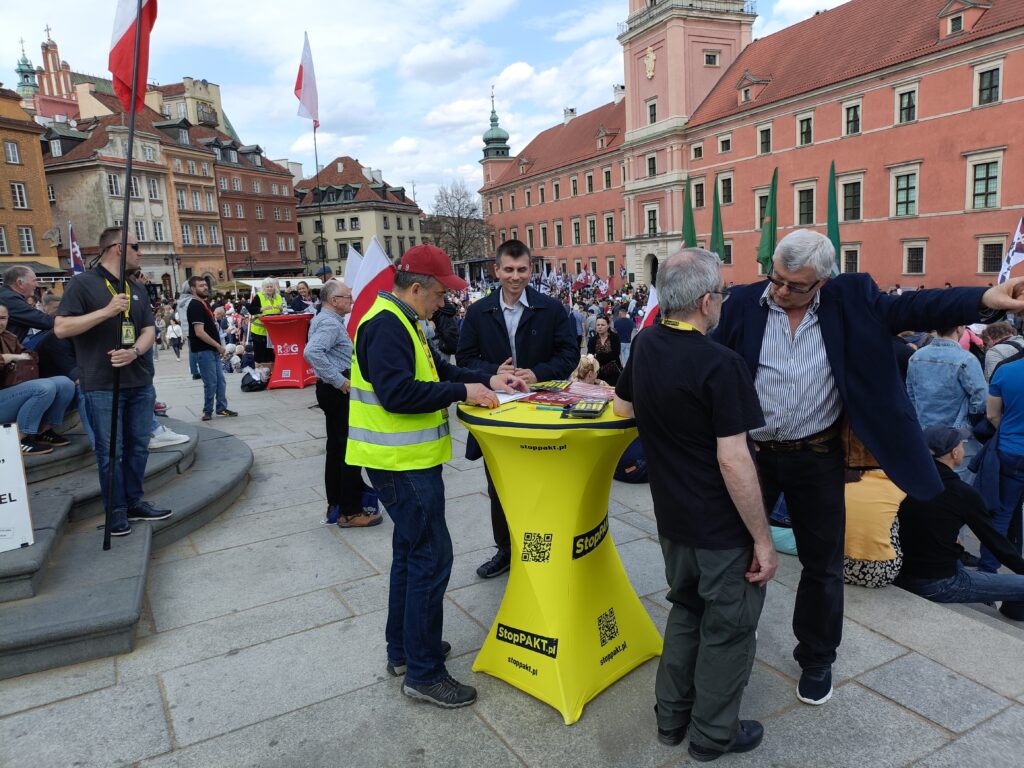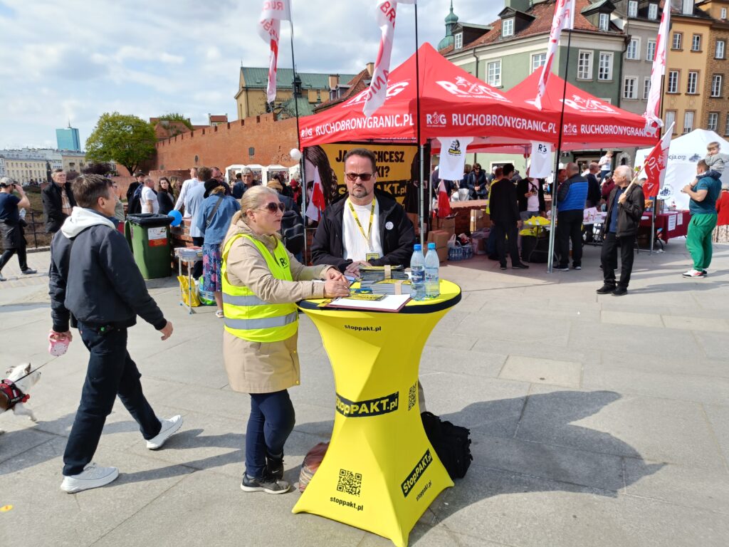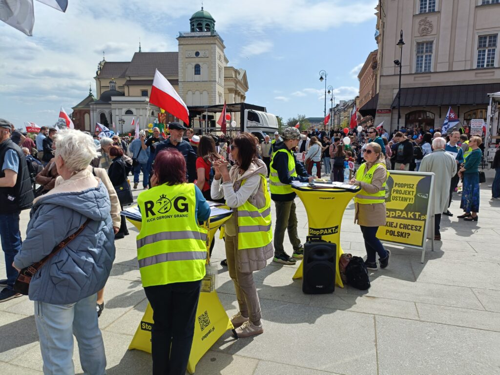 Przez Warszawę przeszedł Narodowy Marsz Życia. Wzięli w nim udział aktywiści Ruchu Obrony Granic, którzy przed i w czasie marszu zbierał podpisy pod inicjatywą Stop Pakt. Pod kolumną Zygmunta na placu Zamkowym był namiot ROG, a stoliki organizacji Roberta Bąkiewicza z kartami do podpisu były wokół placu Zamkowego, na Krakowskim Przedmieściu przed Domem Polonii, na Podwalu przed pomnikiem Jana Kilińskiego, na skrzyżowaniu Senatorskiej i Miodowej, przed Katedrą Praską i przed wejściem na targi książek katolickich. Podpisy były zbierane od 10.00, czyli dwie i pół godziny przed marszem.