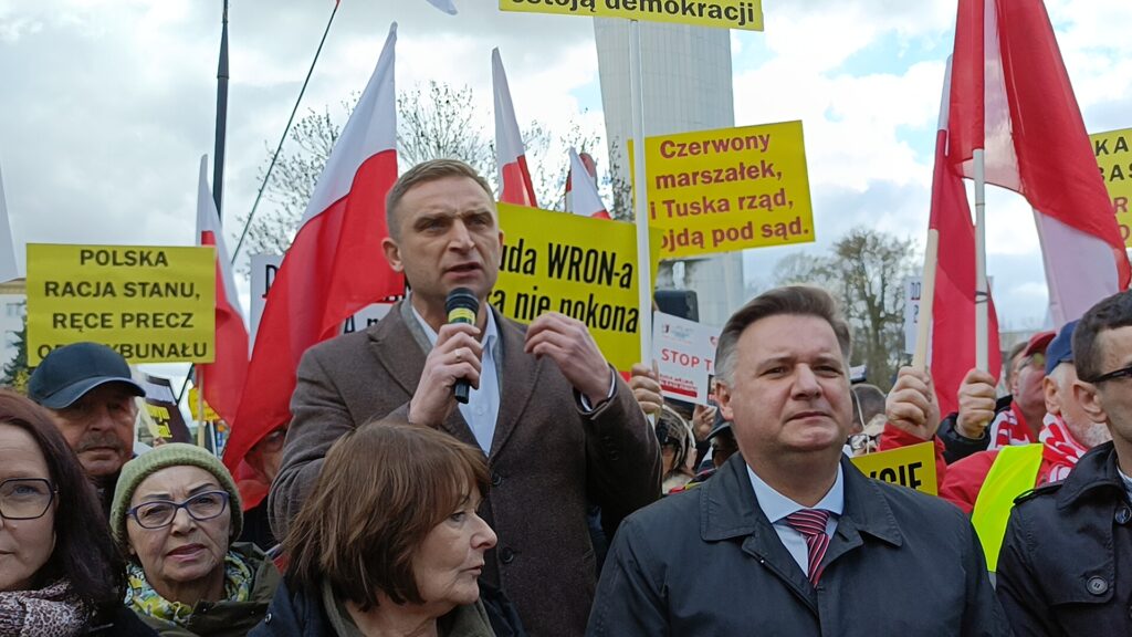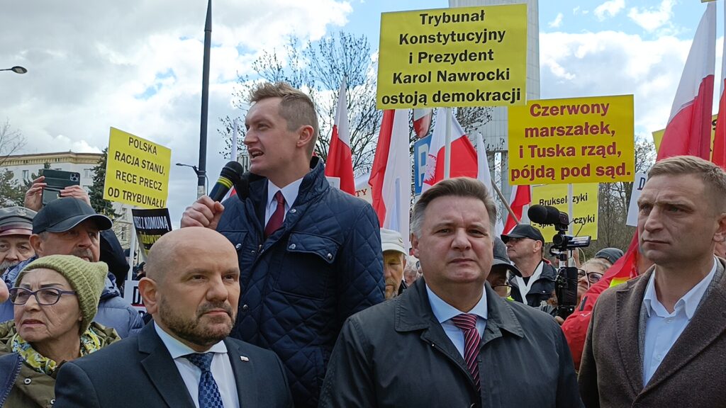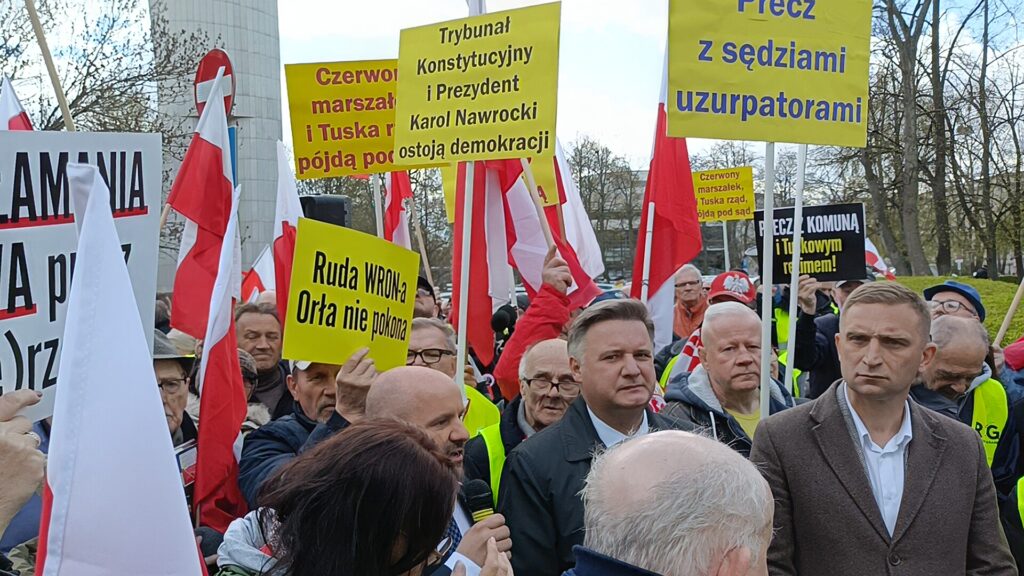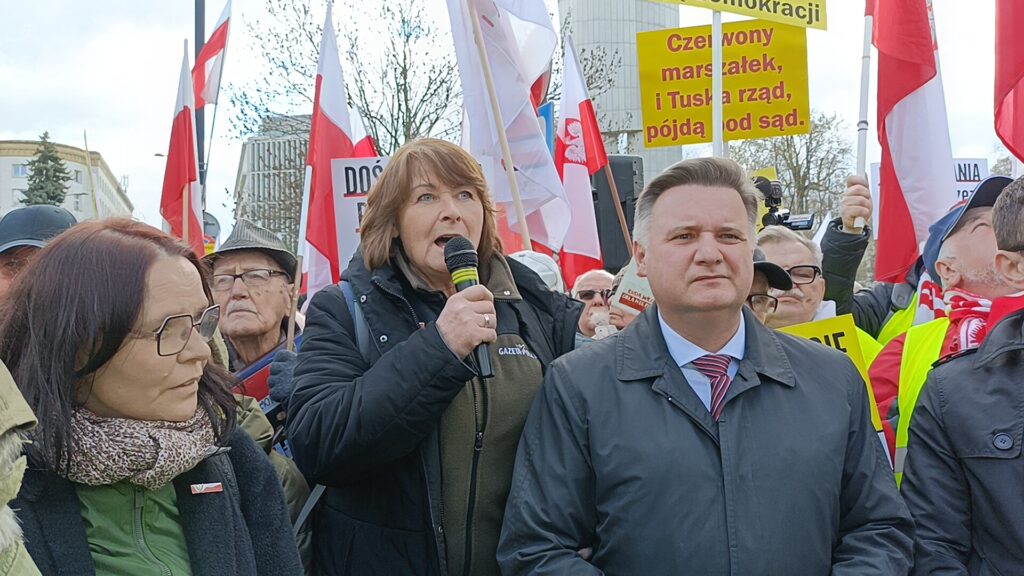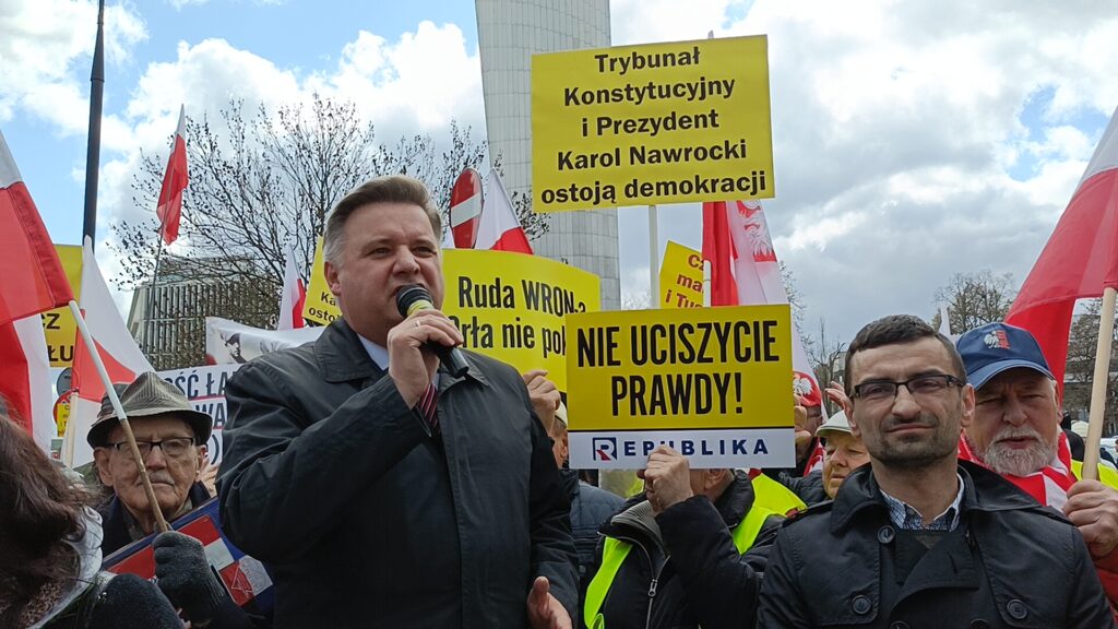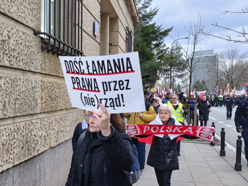 Pomimo wyłączenia sygnału telewizji Republika i w Polsce 24 Ruchowi Obrony Granic i Klubom Gazety Polskiej udało się zwołać kilkuset polskich patriotów przed Sejm i Trybunał Konstytucyjny, by bronić praworządności i demokracji niszczonych przez reżim KO i spółki.