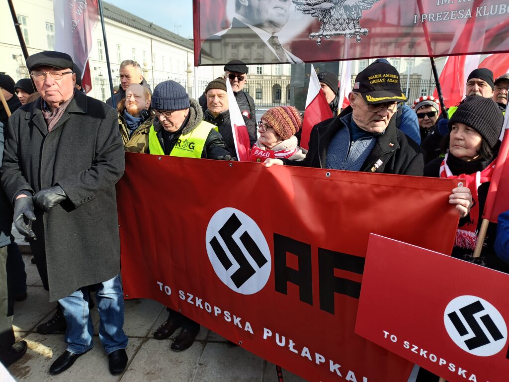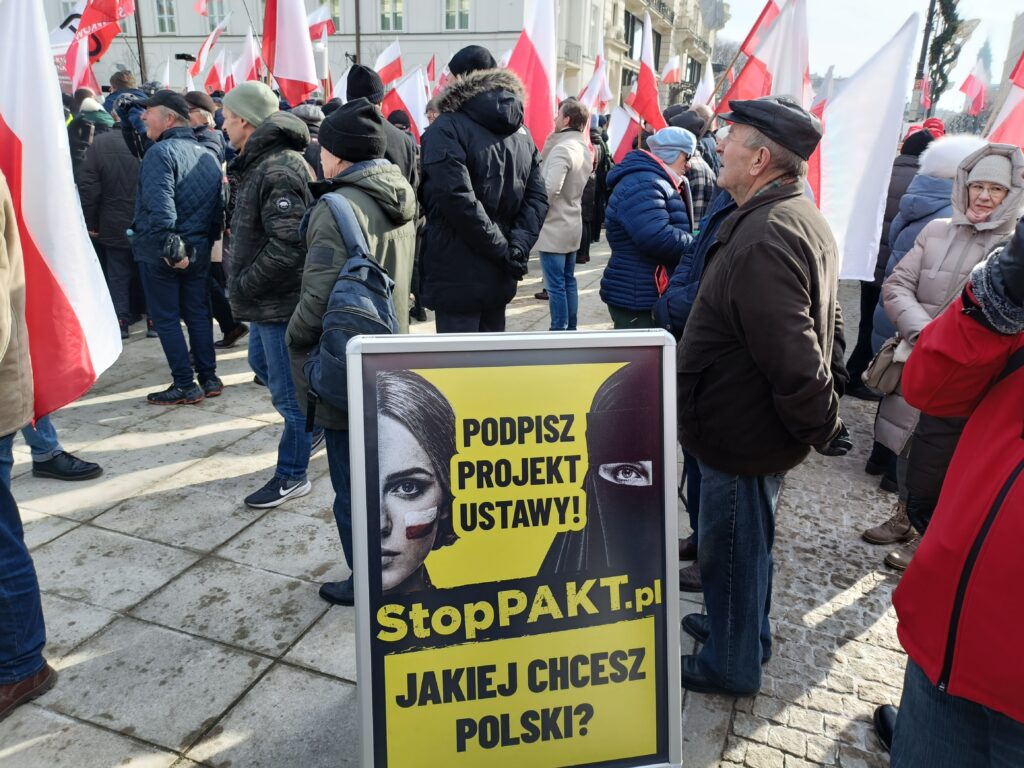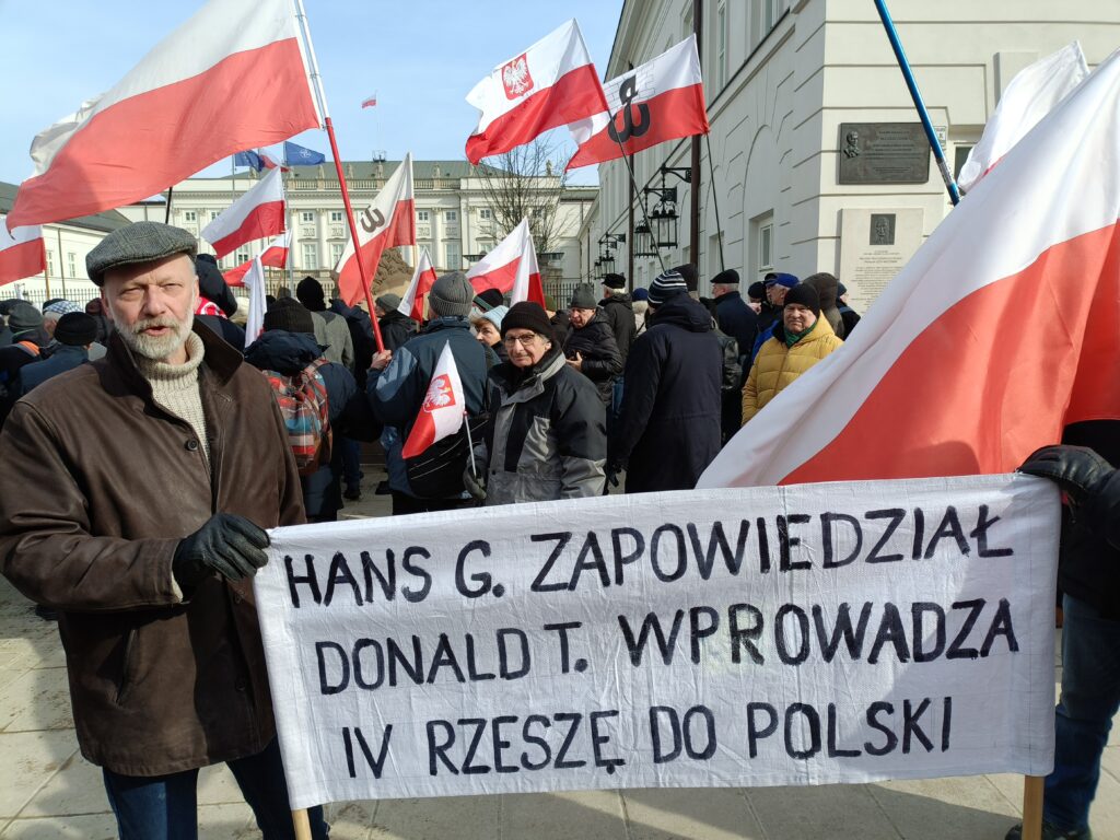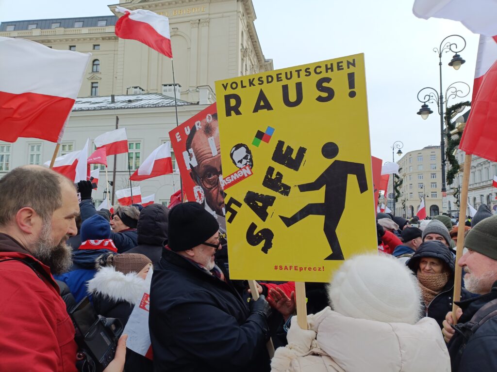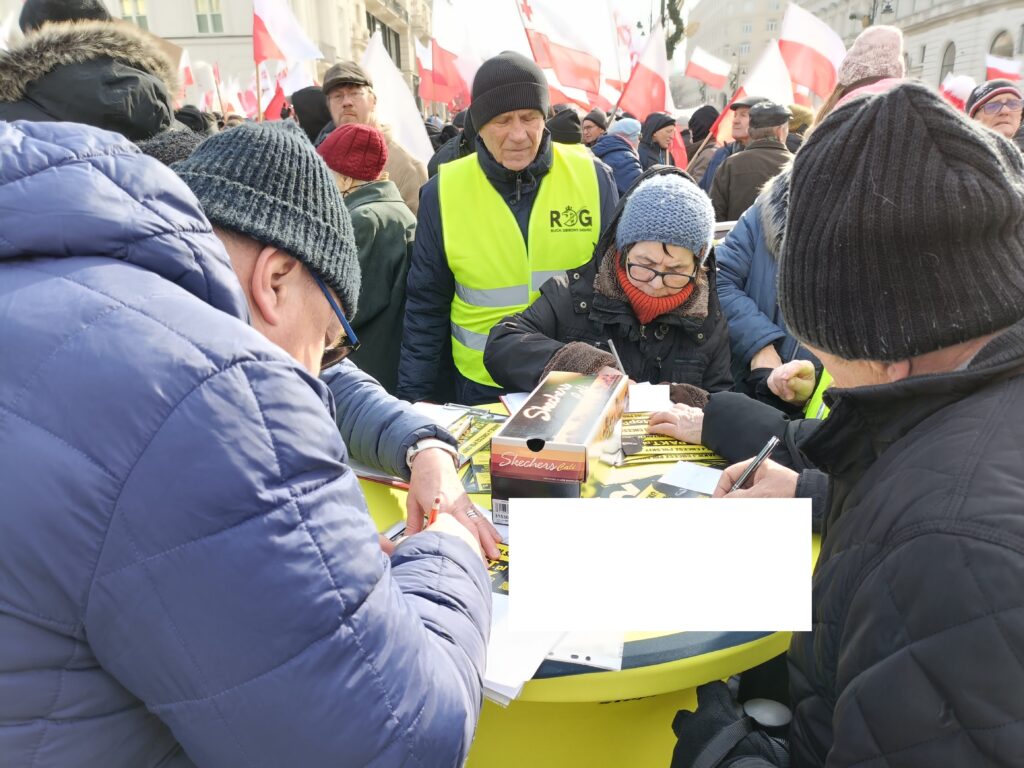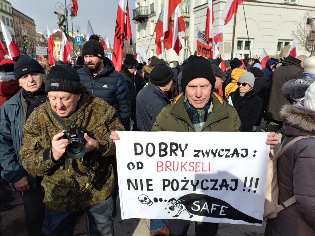 Przed Pałacem Prezydenckim odbył się więc przeciwko SAFE. Wiec zorganizował Ruch Obrony Granic, Kluby Gazety Polskiej i Wolni Polacy. Uczestnicy wiecu apelowali do prezydenta Nawrockiego o zawetowanie ustawy o SAFE. W swoich przemówieniach i rozmowach z prasą aktywiści ROG podkreślali, że SAFE to lichwiarska pożyczka, której oprocentowania nie znamy, którą będziemy musieli spłacać, choć możemy nie dostać kasy, oraz której celem jest pełne podporządkowanie Polski Unii Europejskiej będącej narzędziem niemieckiego kolonializmu.