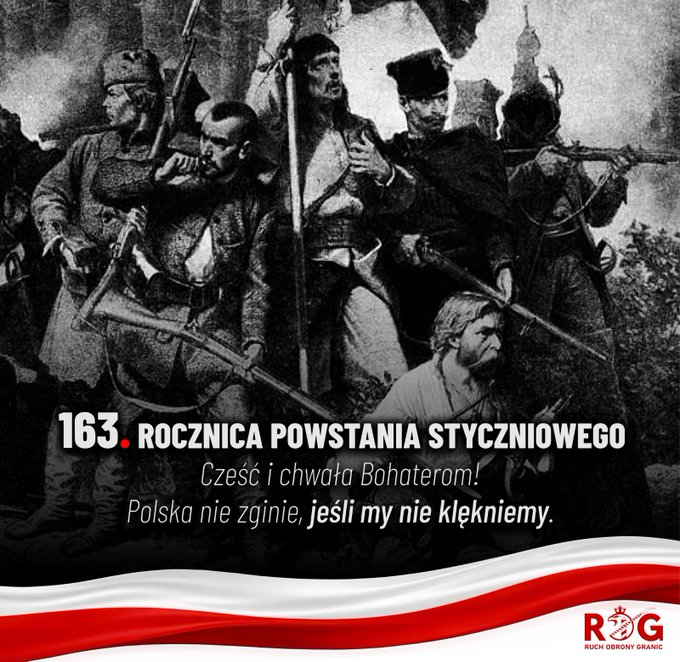 Do wpisu Roberta Bąkiewicza warto dodać,, że 163 lat temu, w nocy z 22 na 23 stycznia 1863 roku wybuchło Powstanie Styczniowe. Komitet Centralny Narodowy w swoim manifeście ogłosił się Tymczasowym Rządem Narodowym i wezwał „naród Polski, Litwy i Rusi” do walki.
