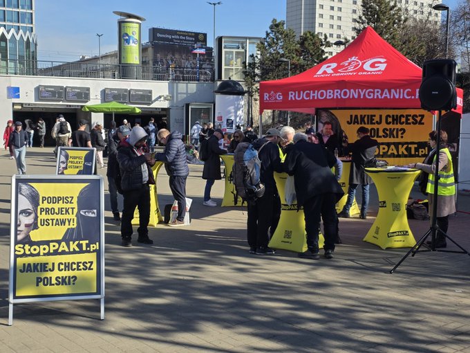 Aktywiści Ruchu Obrony Granic zbierają w całej Polsce podpisy pod społecznym projektem ustawy blokującej Pakt Migracyjny UE.