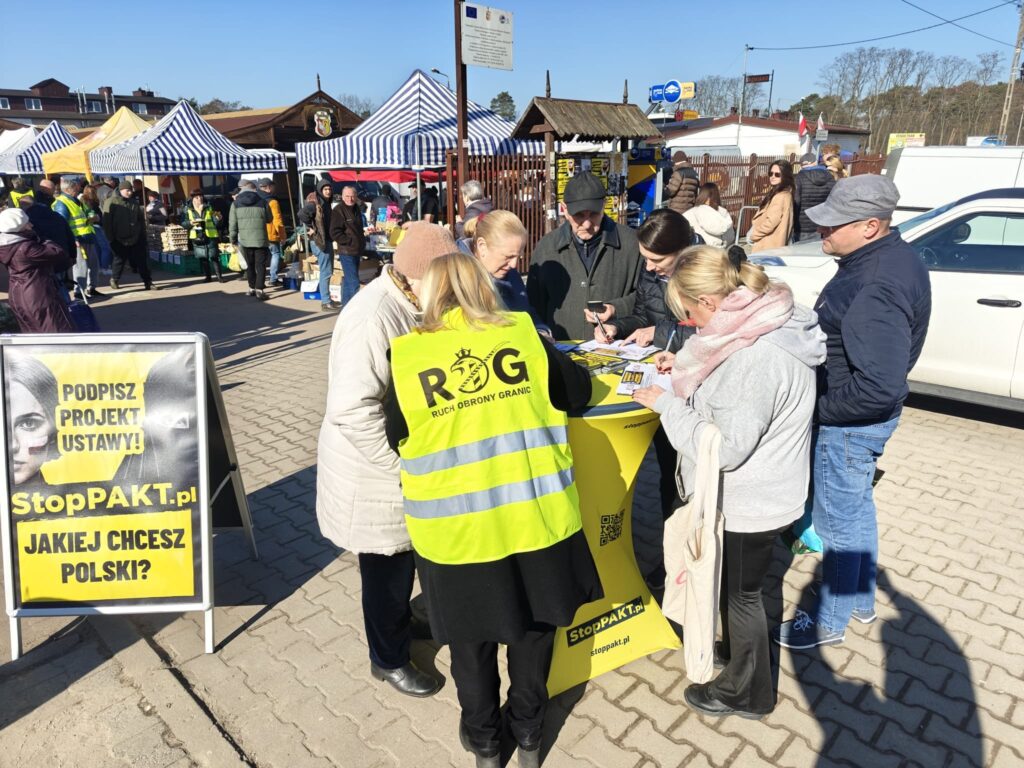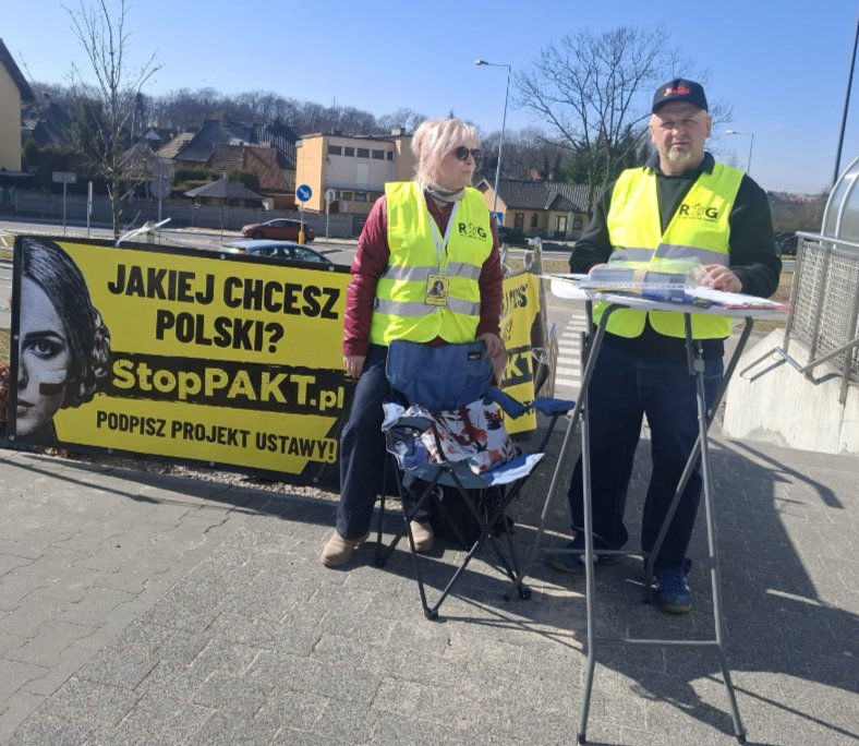 Organizator wielu protestów ROG Dominik Dzierżanowski nawołuje na X do zbierania podpisów pod społecznym projektem ustawy Stop Pakt, bo prawdziwi polscy patrioci nie chcą „chaosu, który zalał Europę Zachodnią. Bo [kochają swoje] matki, żony i córki. Bo [chcą] bezpieczeństwa dla [swoich] dzieci. Bo Polska nie może powtórzyć błędów innych”.