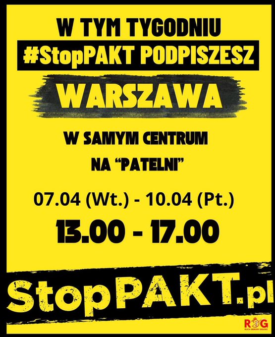 Zbliża się termin złożenia do Sejmu podpisów pod społecznym projektem ustawy Stop Pakt. W Warszawie aktywiści Ruchu Obrony Granic będą zbierali podpisy w centrum stolicy, przed wejściem do stacji metra Centrum, na Patelni, od wtorku do piątku, od 13.00 do 17.00.